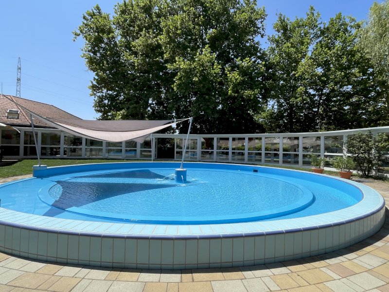 4. sz. "Gyermek pancsoló" medence (nyáron használható) 80 m2 32-34 C°